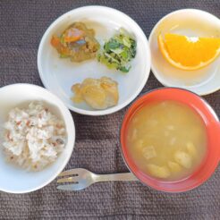 今日はあんかけチャーハンです。 ごはんと一緒に醤油を炊き込み香りを付けます。 そして炒り卵も合わせたごはんに野菜たっぷりのとろとろのあんをかけて食べます。 今日の給食(乳児量) … 続きを読む