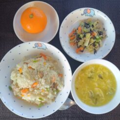 今日の給食は鶏ごぼうピラフです。 バターで具を炒めてご飯と混ぜるので、バターの香りがとてもいい香り✨ ごぼうとの相性もとっても良いピラフです✨ サラダのドレッシングはゆずの皮をすりおろして、 … 続きを読む