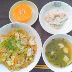 今日はみんな大好き焼きそばです。 園の焼きそばはスチームコンベクションで作ります。 真砂和えはたらこを焼いてフードプロセッサーにかけ、マヨネーズとすりごま、三温糖を合わせて きゅうり、れんこ … 続きを読む