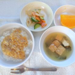 今日は高野豆腐のそぼろごはんです。 高野豆腐を戻してフードプロセッサーにかけます。 にんじん、長ねぎ、たけのこもフードプロセッサーにかけ 鶏ひき肉を炒め野菜も加えてだし汁を加えて煮ます。 食 … 続きを読む