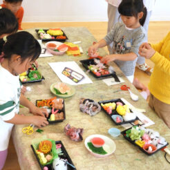 今日は新年会、お誕生日会でした。 給食は毎年恒例のおせちです。 子どもが食べやすいようにアレンジし、お節料理を身近に感じられるようにしています。 きんとんはみかんジュースで煮てさっぱりとした … 続きを読む