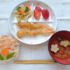 今日は3月のお誕生日会とひな祭り会でした。 給食は五目寿司と今年度初登場のえびの野菜衣揚げです。 えびの野菜衣揚げはにんじん、たまねぎをみじん切りにし衣に混ぜ揚げるので彩りがきれいです。 乳 … 続きを読む