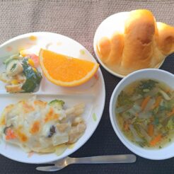 今日からつき組さんのリクエストメニューが登場します。 チーズグラタンはリクエストで、マカロニ、じゃがいも、鶏肉、玉ねぎ、にんじん、 しめじ、ブロッコリーと具沢山にしました。 とろとろのホワイ … 続きを読む