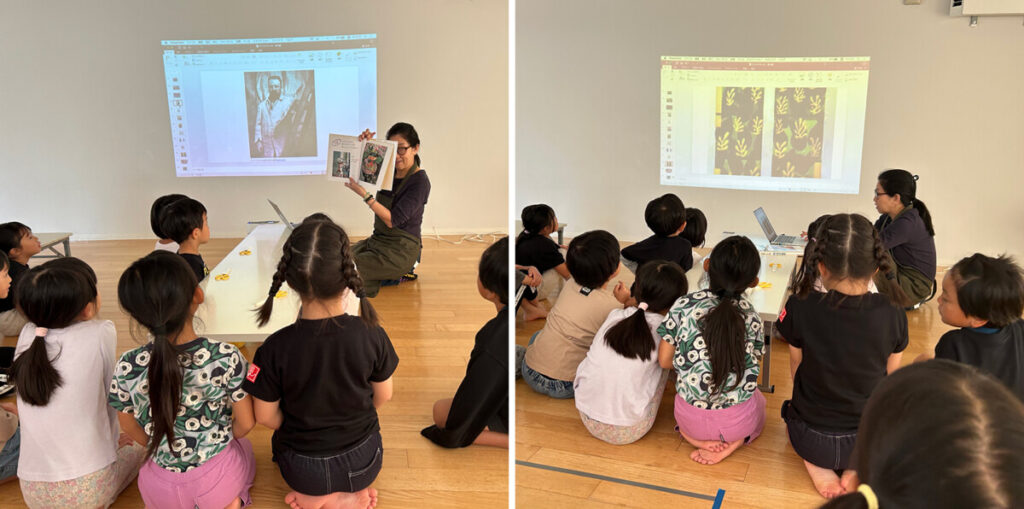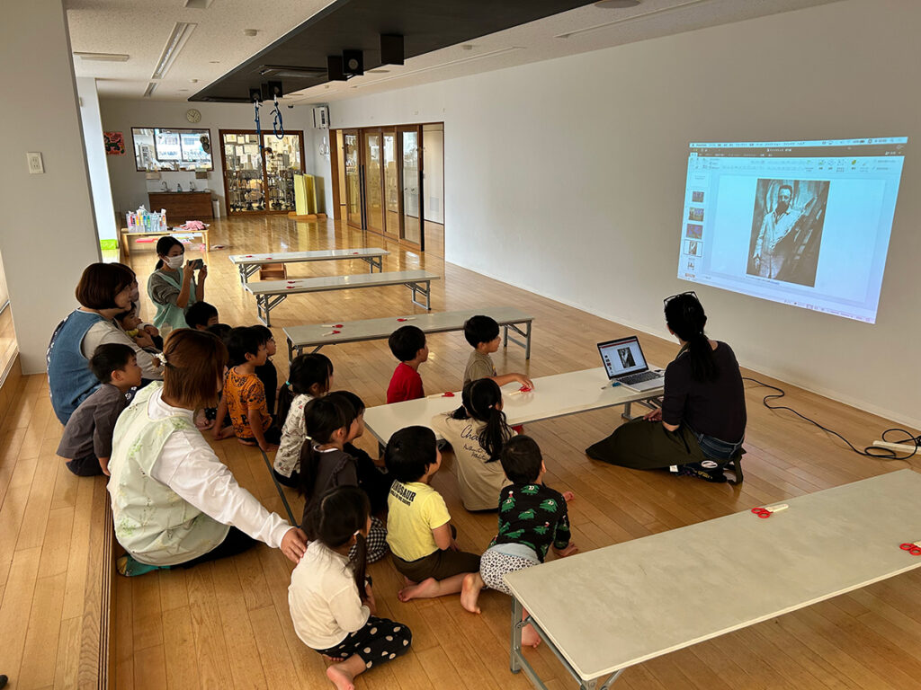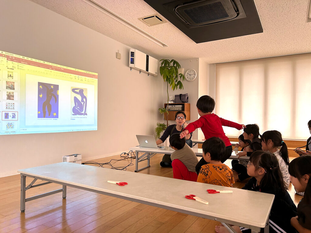 さて、そんな些末な私見はさておき、今回も前回同様にワークショップのはじまりは年中・年長クラス共にプロジェクターや絵本を通してアンリ・マティスという人物像から作品までを紹介していきました。