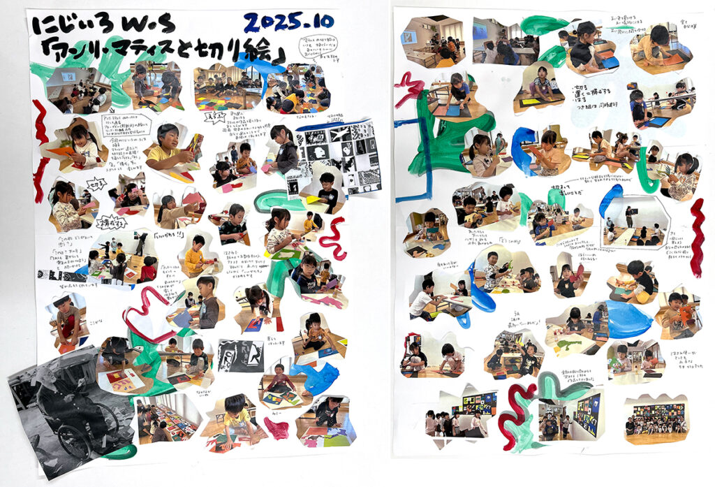 「アートとして考えるかどうかは別として、何かに行き詰ったり、考えることに疲れたとき、無心に指先とハサミ任せに紙を切り込んでみる、そんな行為が意外ともやもやした気持ちを断ち切って、次への新しいステップにつながったりします。子どもたちにはこの体験をおとなになっても覚えていて欲しいと思います。少なくとも、今日、この時間はマティスになり得たのですから」