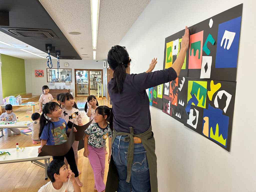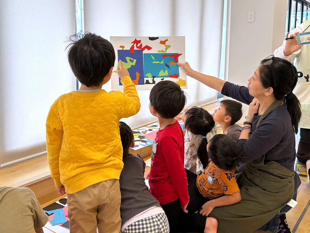 今回、そんなマティスがワークショップのテーマに掲げられました。彼が生涯をかけて創り上げた豊かな芸術を、わずか4~5歳の子どもたちが体験できるというすばらしさに、なぜか私の心までがスウィングしています。