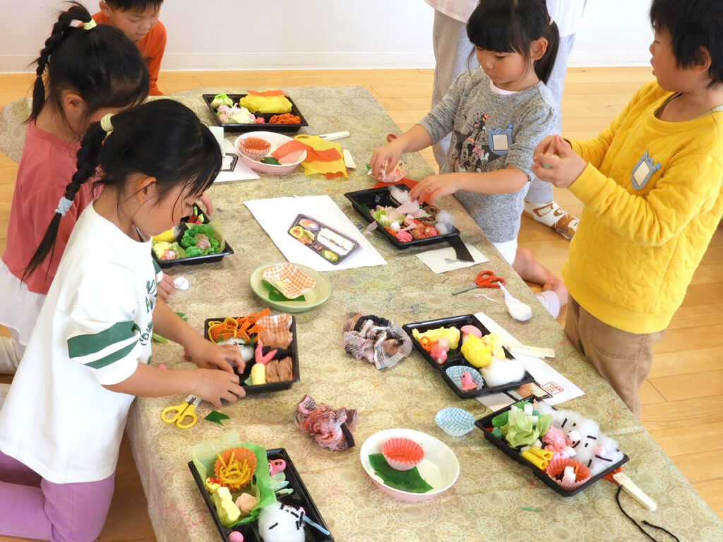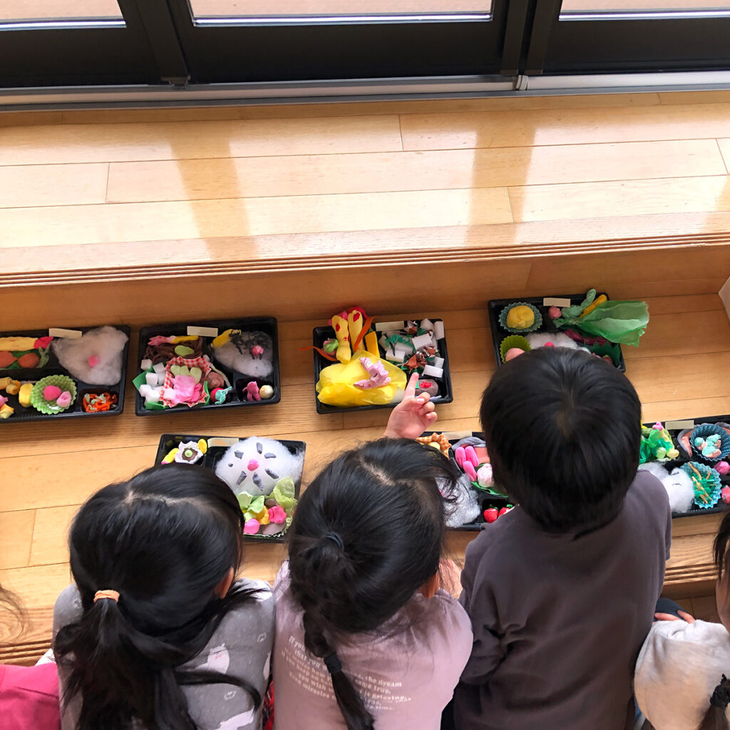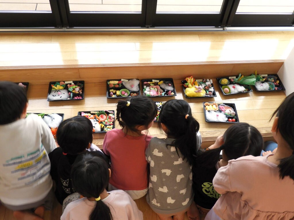 そうこうするうちに、年中・年長クラスの誰もが完成度の高いお弁当(作品)をつくり上げました。