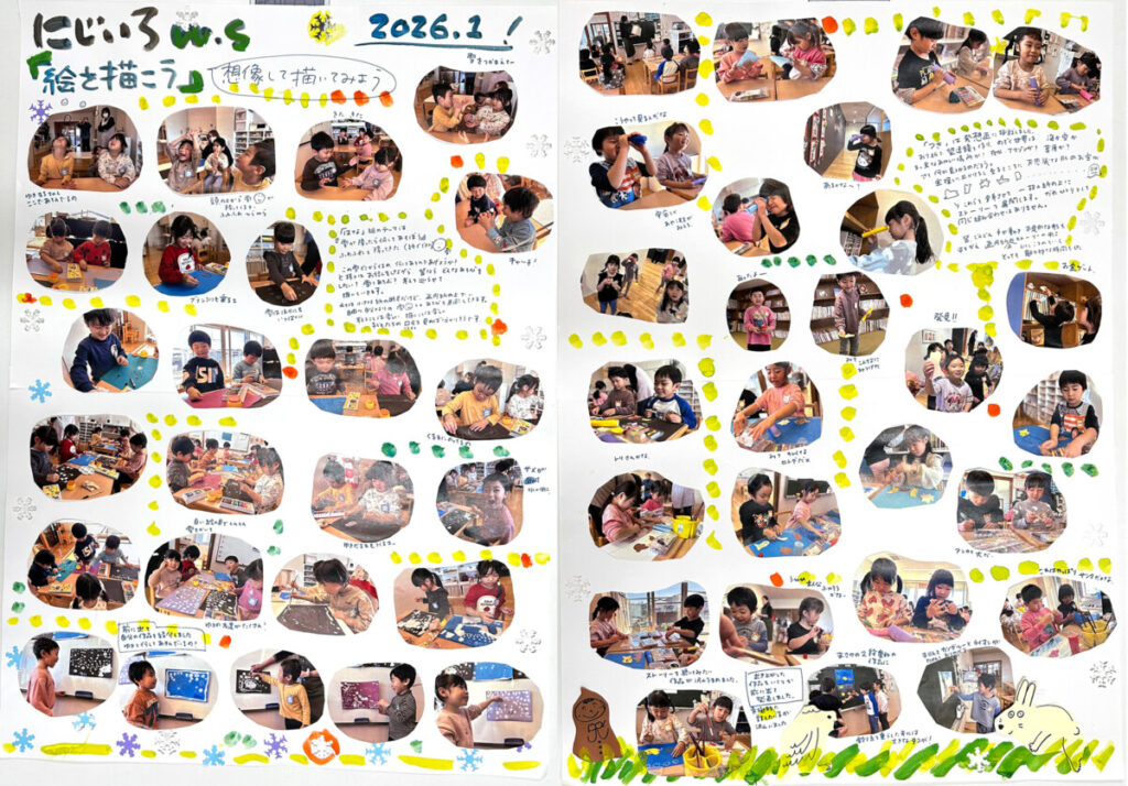 年長クラスは、「絵を描く」という同一テーマながら、明らかに年中クラスとは異なる展開となりました。
