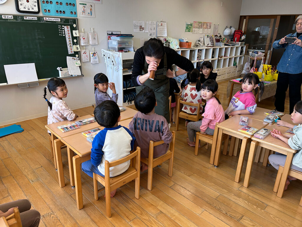 ほかの保育士たちも日頃からこうしたさまざまな取り組みをしているというので、当園の子どもたちが平然と先生の指示に対応できたり、上達も早かったり、何よりもアートへの関心が高いのだということにあらためて気づかされました。地道なことですが、日々の積み重ね、ってほんとうに大切なのだということも痛感しました。