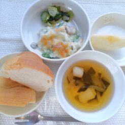今日は鶏肉のくわ焼きです。 おろししょうが、長ねぎ、三温糖、しょうゆに鶏肉を漬け込んで焼きました。 甘めの味付けですがおろししょうがと長ねぎがさっぱりしています。 今日の給食( … 続きを読む