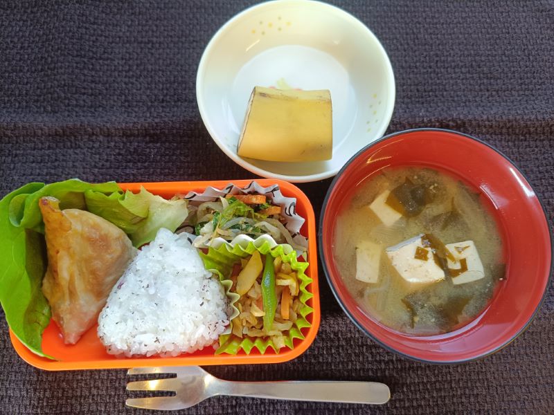 はな組さんのリクエストの鶏のてりやきとゆかりごはんおにぎりのお弁当です。