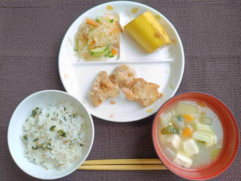 意外にもリクエストからもれた鶏肉の竜田揚げと豚汁は、私たちの推しなのでぜひ最後に食べてもらいたく