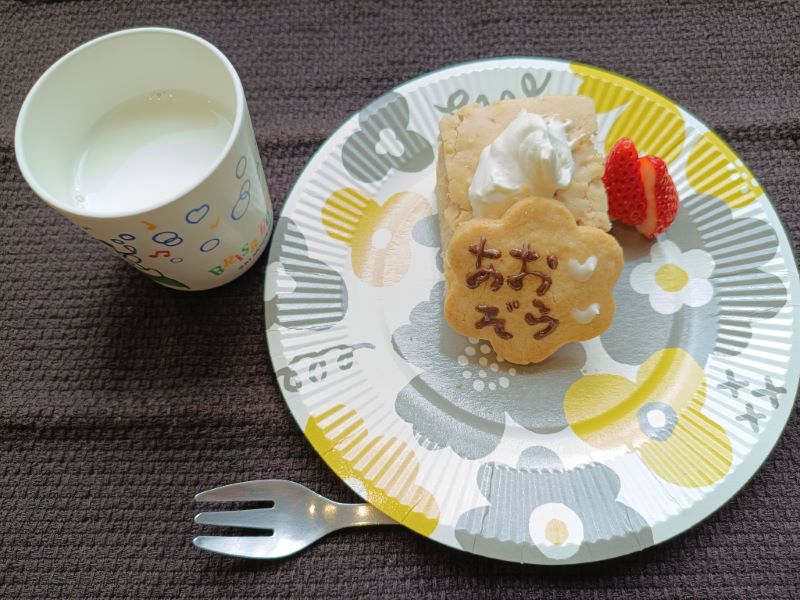 今年はいちごのケーキのリクエストがありましたのでいちごケーキと、恒例のお名前入りのクッキーです。