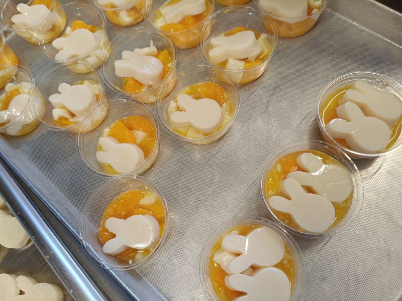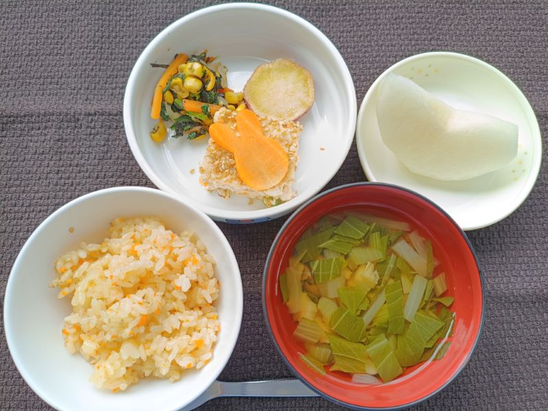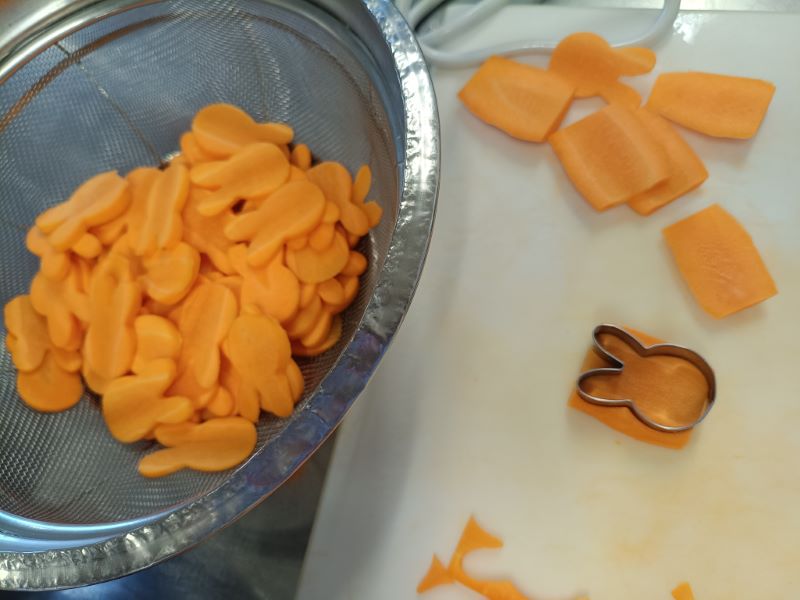 にんじんはうさぎ型に抜き、松風焼きにのせました。