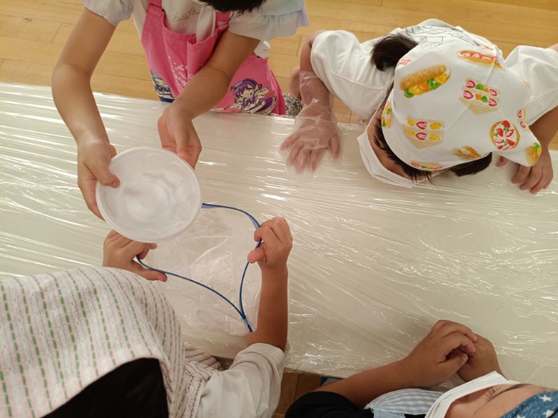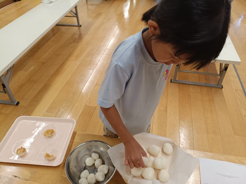 昨日つき組さんがお月見会で鑑賞するお月見団子を作ってくれました。