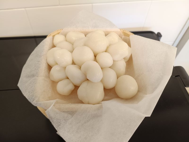 丁寧に作ったお団子はツルツル、つやつやしていて三宝にのせにくく