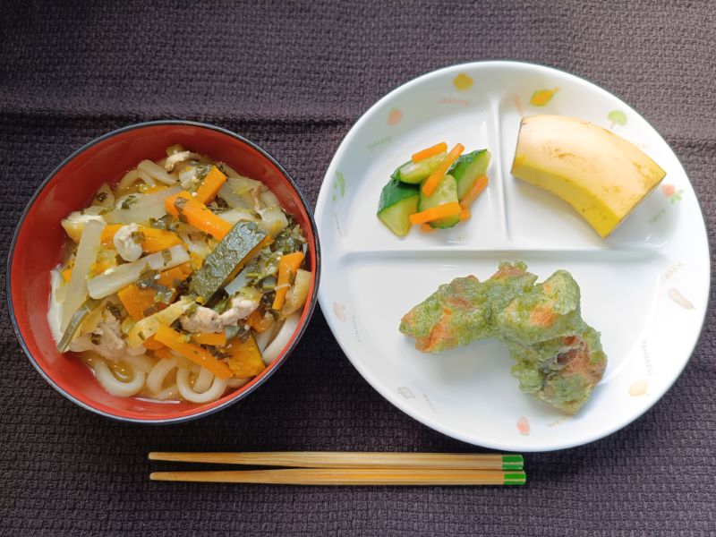 今日の給食はほうとううどんです。