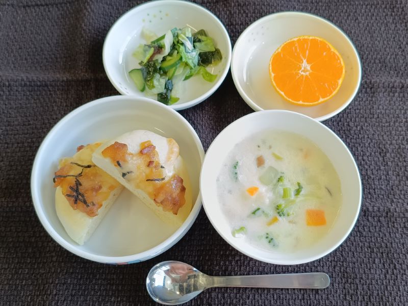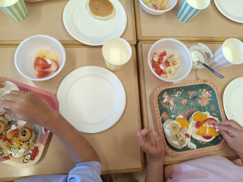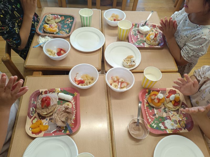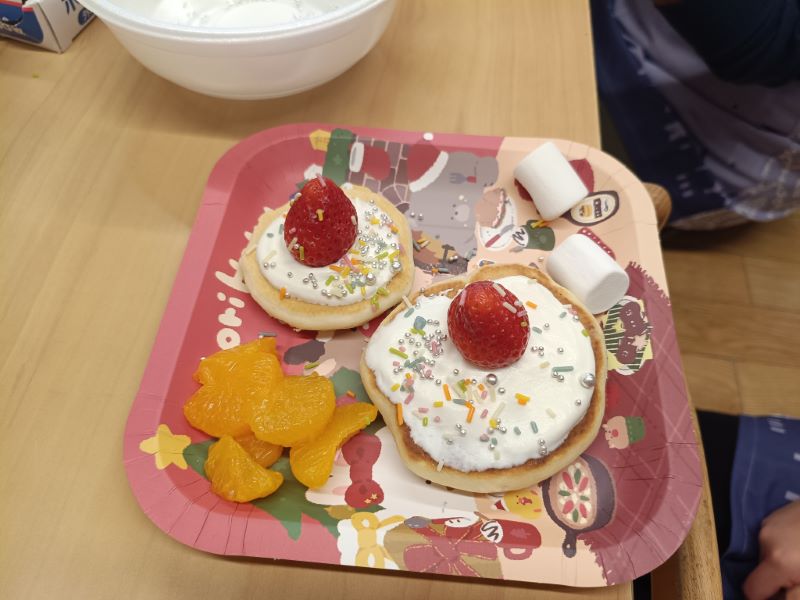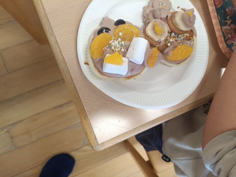 ビスケットや普段は給食に登場しない、マシュマロやチョコスプレーも今日は特別に用意しました。