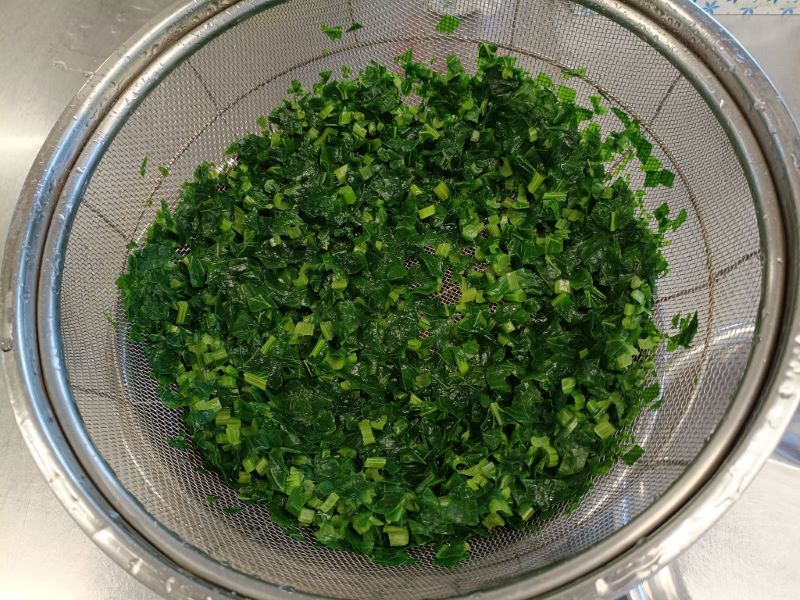 小松菜は給食室で洗って、切って、茹でておきました💡