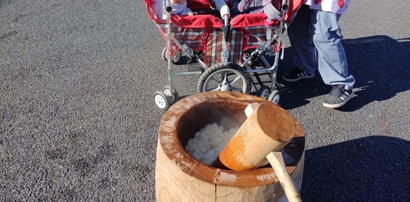 幼児クラスの保護者の方にもご協力いただいて、18kのもち米からもちもちふわふわのおもちがたくさんできあがりました。