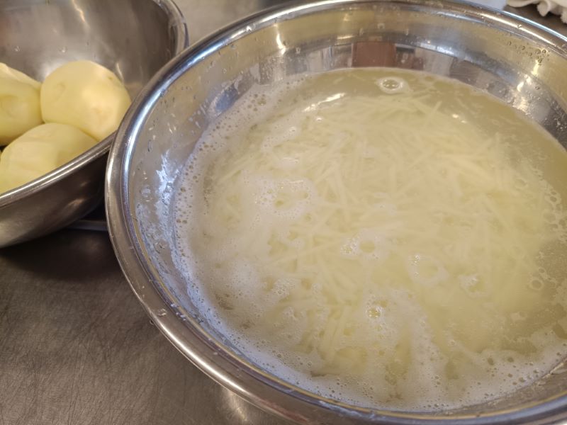 じゃが芋はできるだけ細い千切りにして、カリッとするまで揚げるのがポイントです👍
