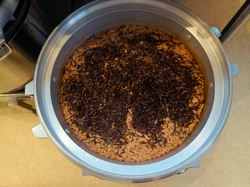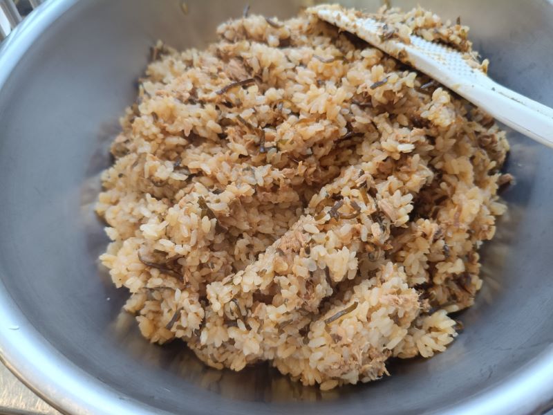 昆布の佃煮とツナをお米と一緒に炊き込みます。