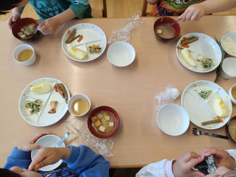 幼児クラスでは月に一度自分でおにぎりを作る「ラップおにぎり」というメニューがあります。