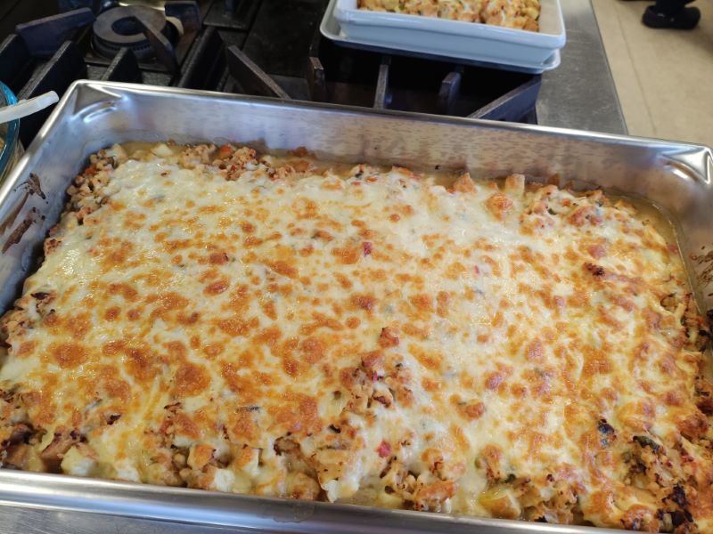 コロコロに切った生揚げの上に乗せて、チーズをかけて焼いたら出来上がりです。