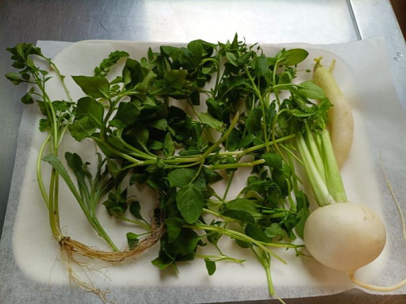 春の七草(せり、なずな、ごぎょう、はこべら、ほとけのざ、すずな、すずしろ)が入ったお粥を食べます💡