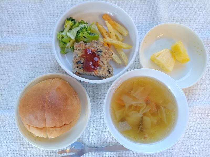 給食室では6キロものポテトを一生懸命揚げましたが、