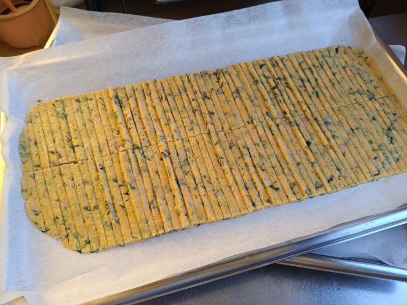 今日は人参とほうれん草のみじん切りを加えて野菜プリッツを作りました🥕✨