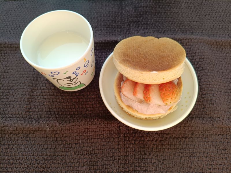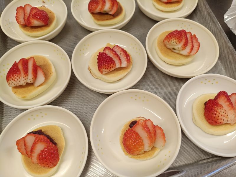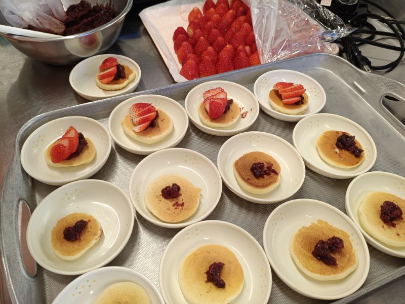 1歳児はあんこといちごをのせ、2歳児からはあんこクリームといちごをのせ、3歳児からはサンドしました。