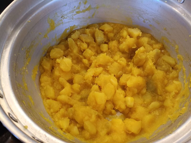 きんとんはみかんジュースで煮てさっぱりとした甘さで人気です。