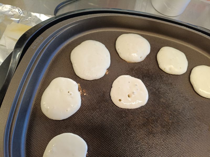小さなパンケーキをたくさん、なんと200枚!!作り、