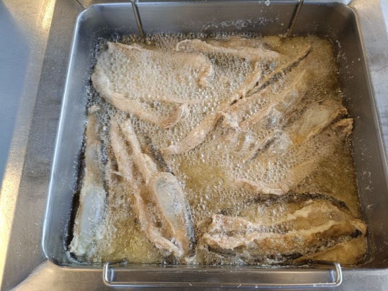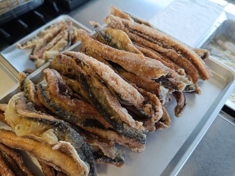 片栗粉と小麦粉を合わせてさんまにまぶし、からっと揚げ、