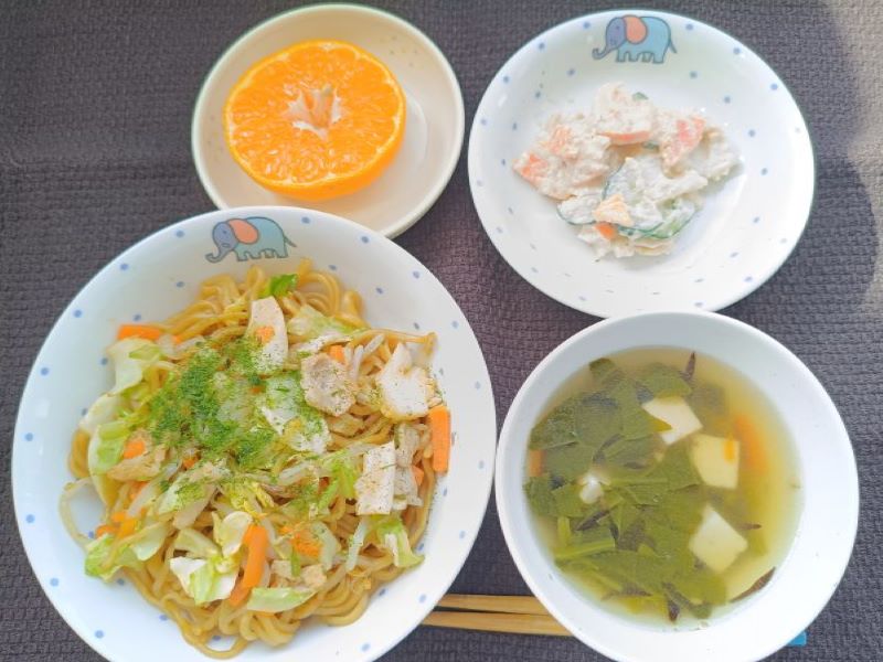 焼きそば! 2026年1月22日 木曜日給食ブログ 今日はみんな大好き焼きそばです。 園の焼きそばはスチームコンベクションで作ります。 真砂和えはたらこを焼いてフードプロセッサーにかけ、マヨネーズとすりごま、三温糖を合わせて きゅうり、れんこん、人参と和えます。 野菜の歯ごたえを残しシャキシャキ食べます。 ほかの野菜でもおいしく作れます。 今日の給食(幼児量) ★ やきそば ★ ★ れんこんの真砂和え ★ ★ ひじきのスープ ★ ★ ぽんかん ★ 今日のおやつ ★ きつねごはんおにぎり ★ ★ 牛乳(幼・乳) ★