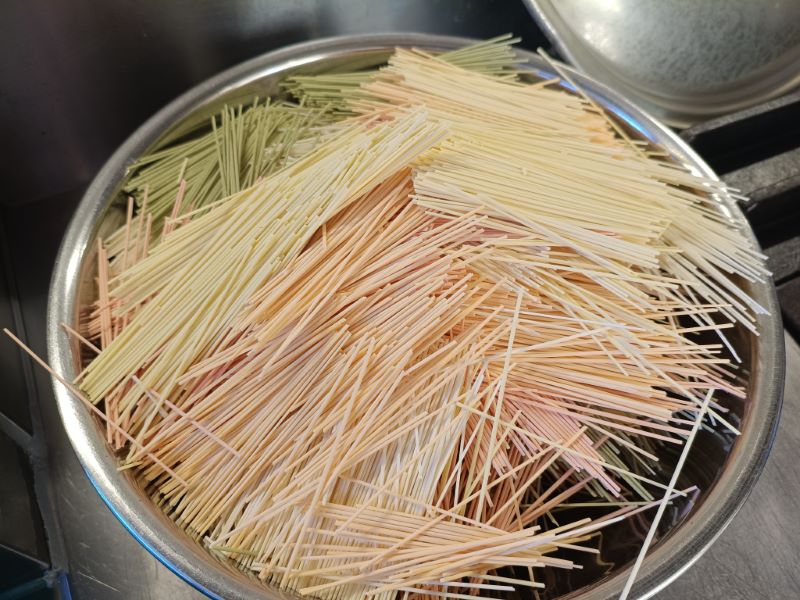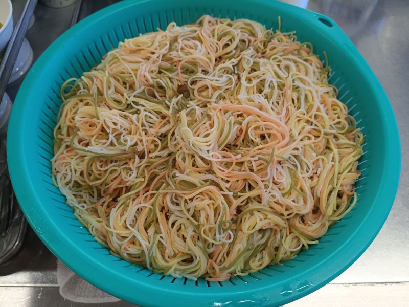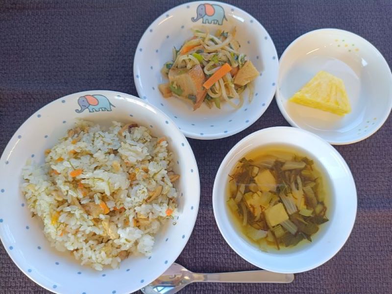 色の付いた素麺!! 2025年12月15日 月曜日給食ブログ 今日の午後のおやつは『にゅう麺』です。 暖かい麺は、寒い季節にはぴったりの栄養満点メニューです💡 そしていつもは白い素麺ですが、今日は彩りの良い野菜麺を使用しました✨ 野菜麺にはとまと、ほうれん草、にんじん、かぼちゃの粉末が入っています🌸 今日の給食 ★ ジューシー ★ ★ 麩チャンプルー ★ ★ もずくスープ ★ ★ パイン ★ 今日のおやつ ★ にゅうめん ★ ★ 牛乳(幼・乳) ★