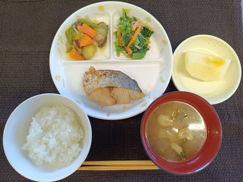 鰆の西京焼き 2026年1月23日 金曜日給食ブログ 今日は鰆の西京焼きの和食メニューです。 園の子どもたちは魚メニューが大好きです。 今日は何のお魚かな?と煙突から出てくるにおいで予想しています。 今日の給食(幼児量) ★ ごはん ★ ★ 鰆の西京焼き ★ ★ さつま芋と豚肉の煮物 ★ ★ 野菜のごま和え ★ ★ せりと油揚げの味噌汁 ★ ★ りんご ★ 今日のおやつ ★ きな粉と豆乳のケーキ ★ ★ 牛乳(幼・乳) ★