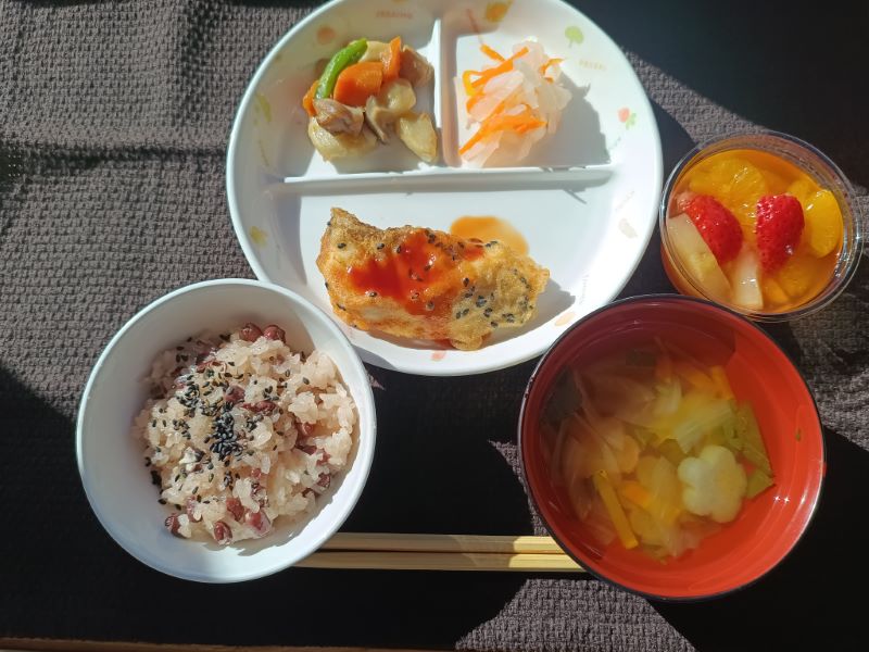 ほかにもお赤飯や紅白なますといったお祝いの時のメニューを合わせました。
