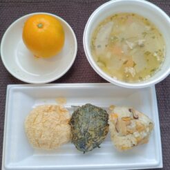 今日はあんかけチャーハンです。 ごはんと一緒に醤油を炊き込み香りを付けます。 そして炒り卵も合わせたごはんに野菜たっぷりのとろとろのあんをかけて食べます。 今日の給食(乳児量) … 続きを読む