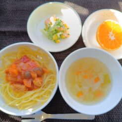 今日の午後のおやつは『にゅう麺』です。 暖かい麺は、寒い季節にはぴったりの栄養満点メニューです💡 そしていつもは白い素麺ですが、今日は彩りの良い野菜麺を使用しました✨ 野菜麺にはとまと、ほう … 続きを読む