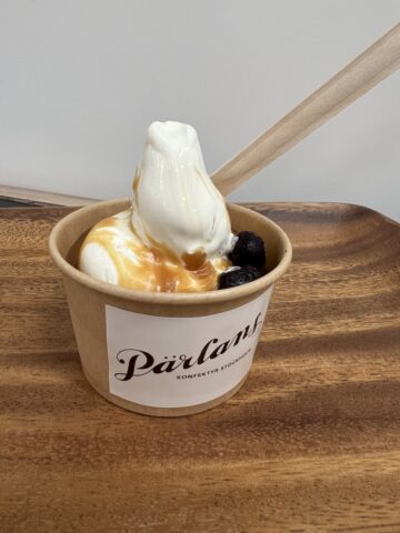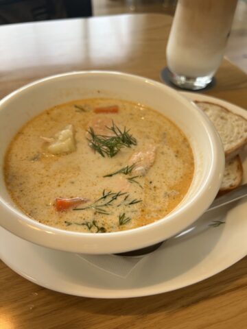 漸く順番がきて、サーモンスープとビルベリーのタルトを注文